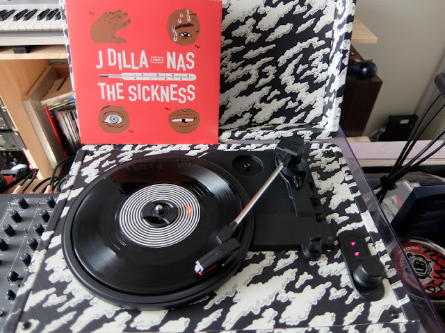 先日海外先行発売されていたポータブルターンテーブル、「THE DILLA TURNTABLE」を購入しました。見た目がクールだったのと78回転のレコードがかけられるので、SP盤の再生ができるのが魅力でした。7インチレコードも付いていてお気に入りです。